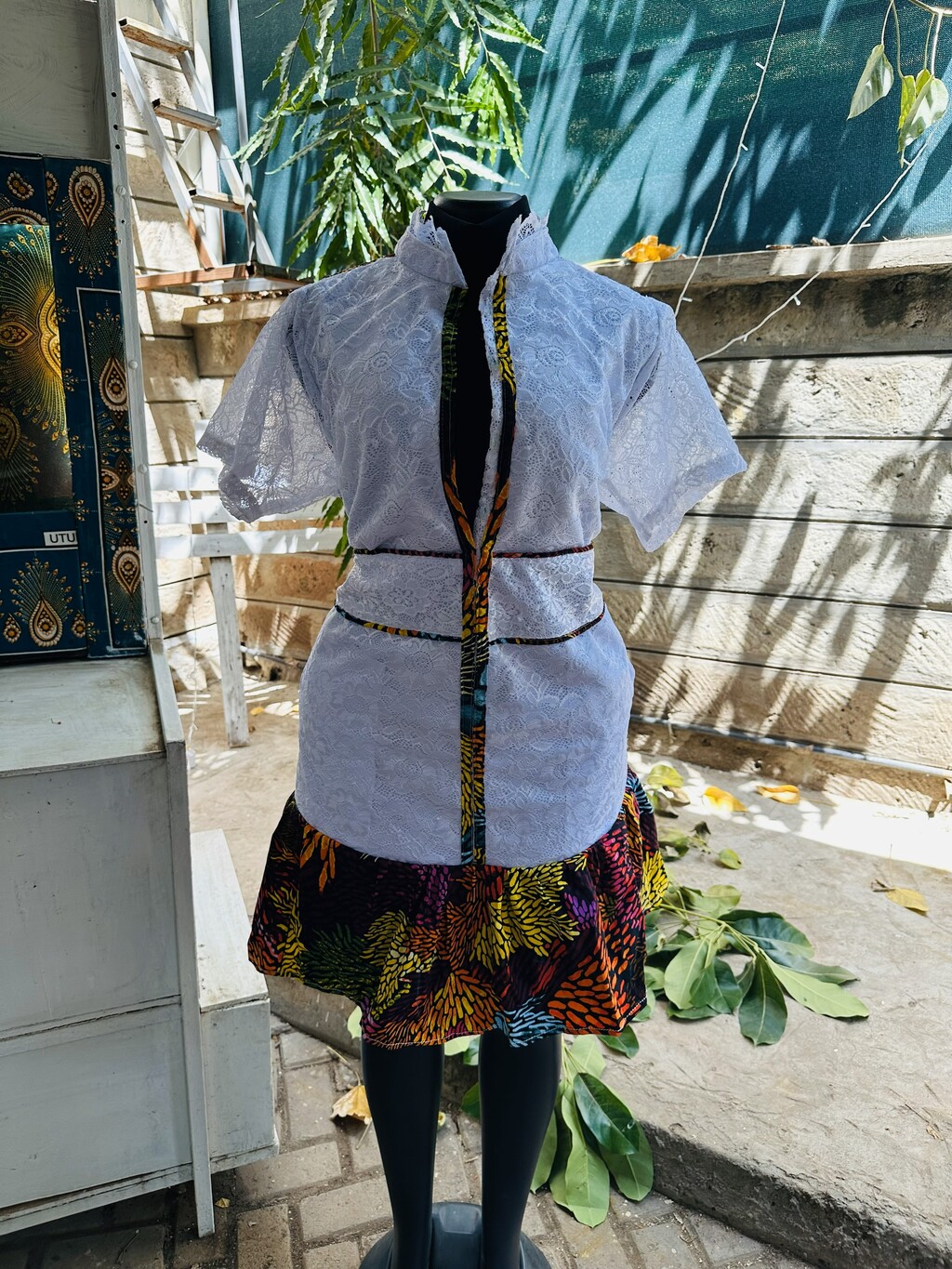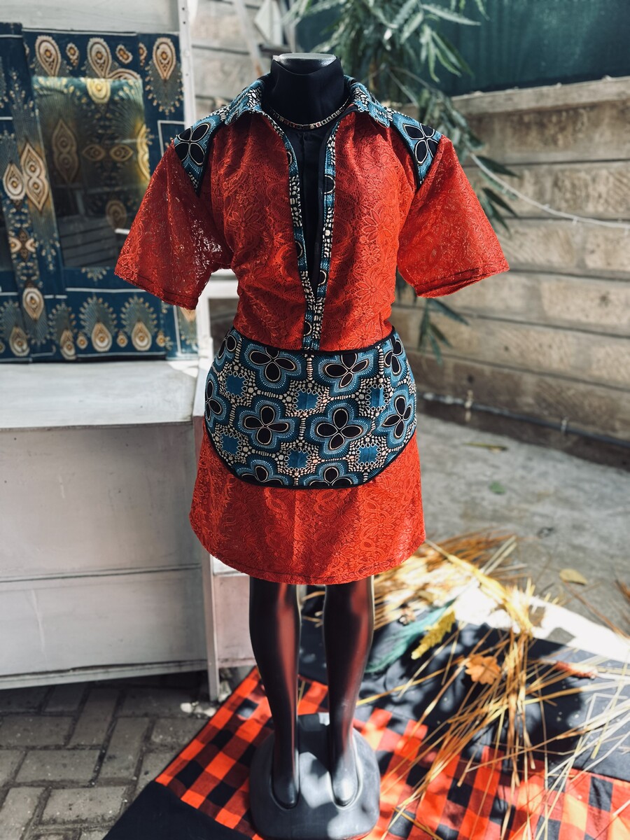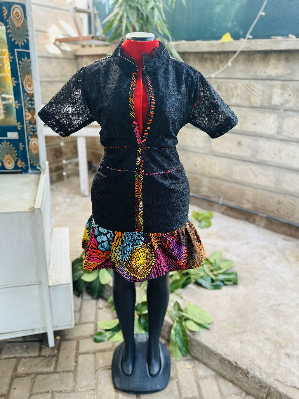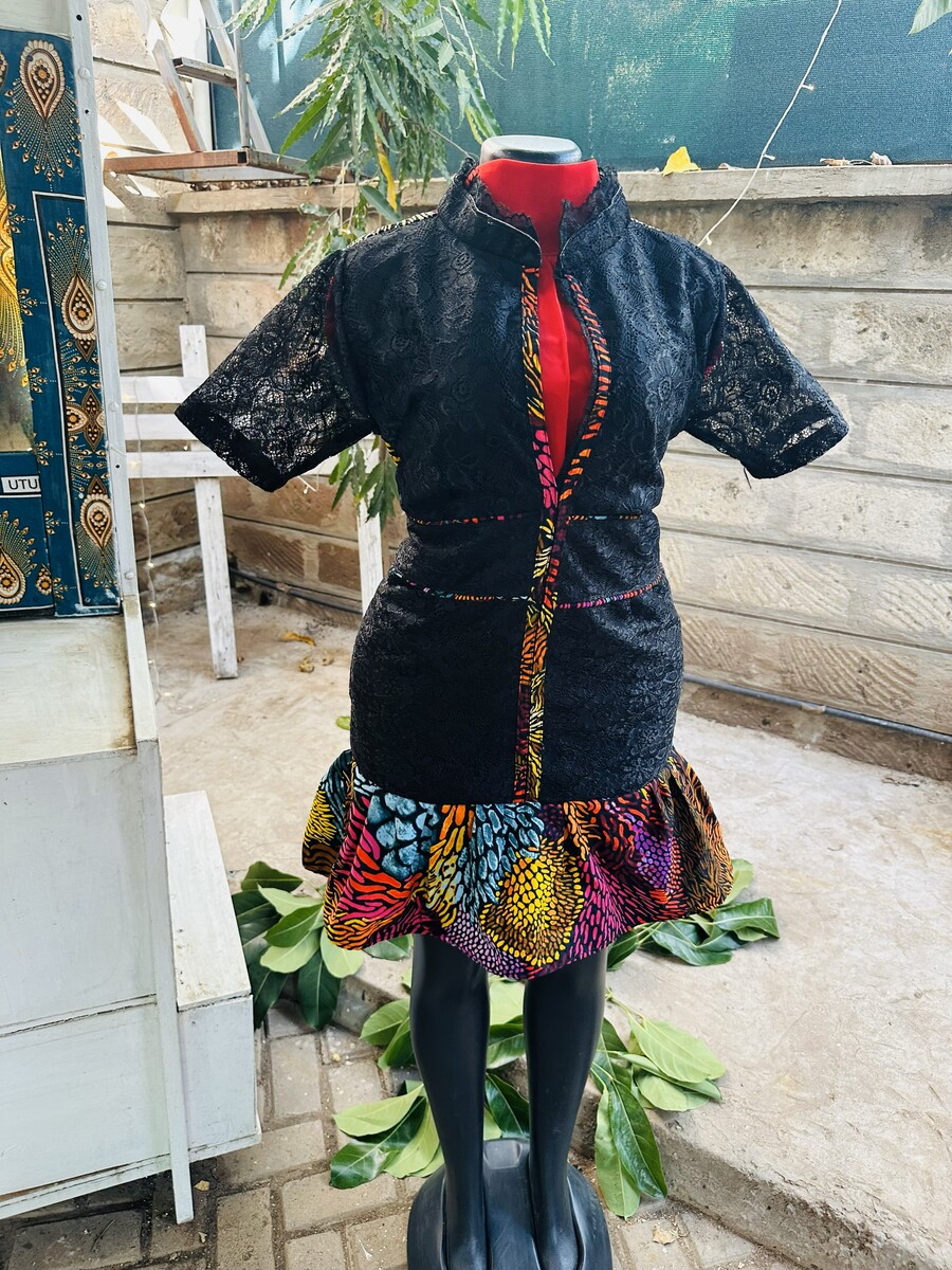 2 different fitted dress silhouettes made with similar durable lace, and Ankara fabric.