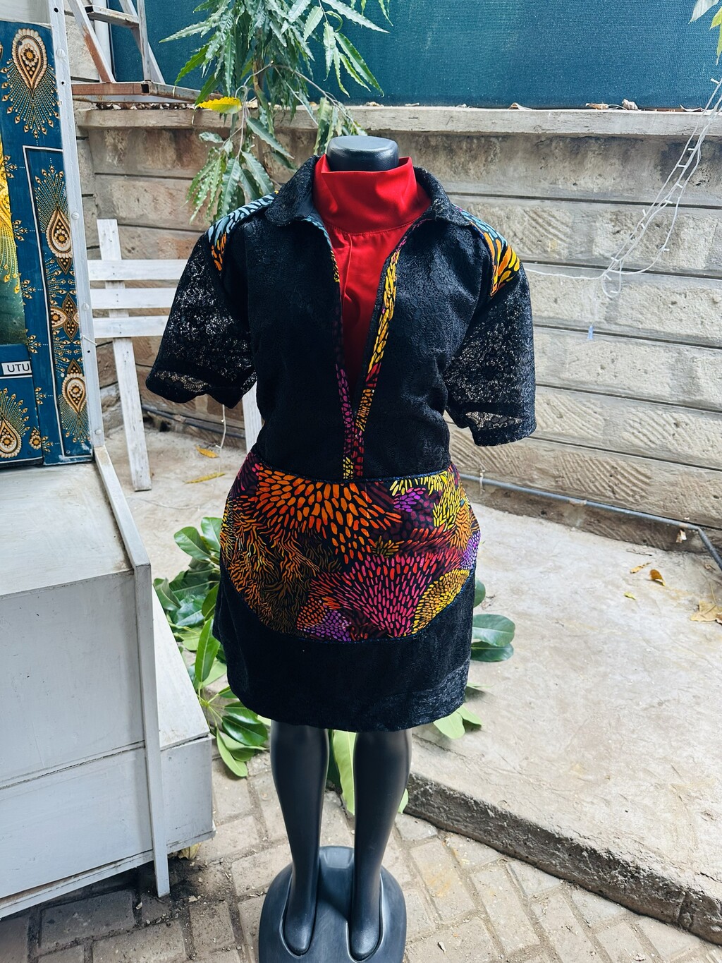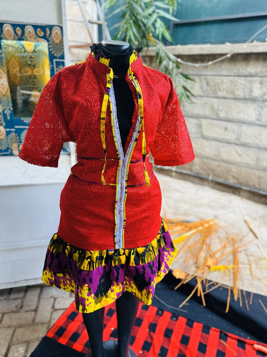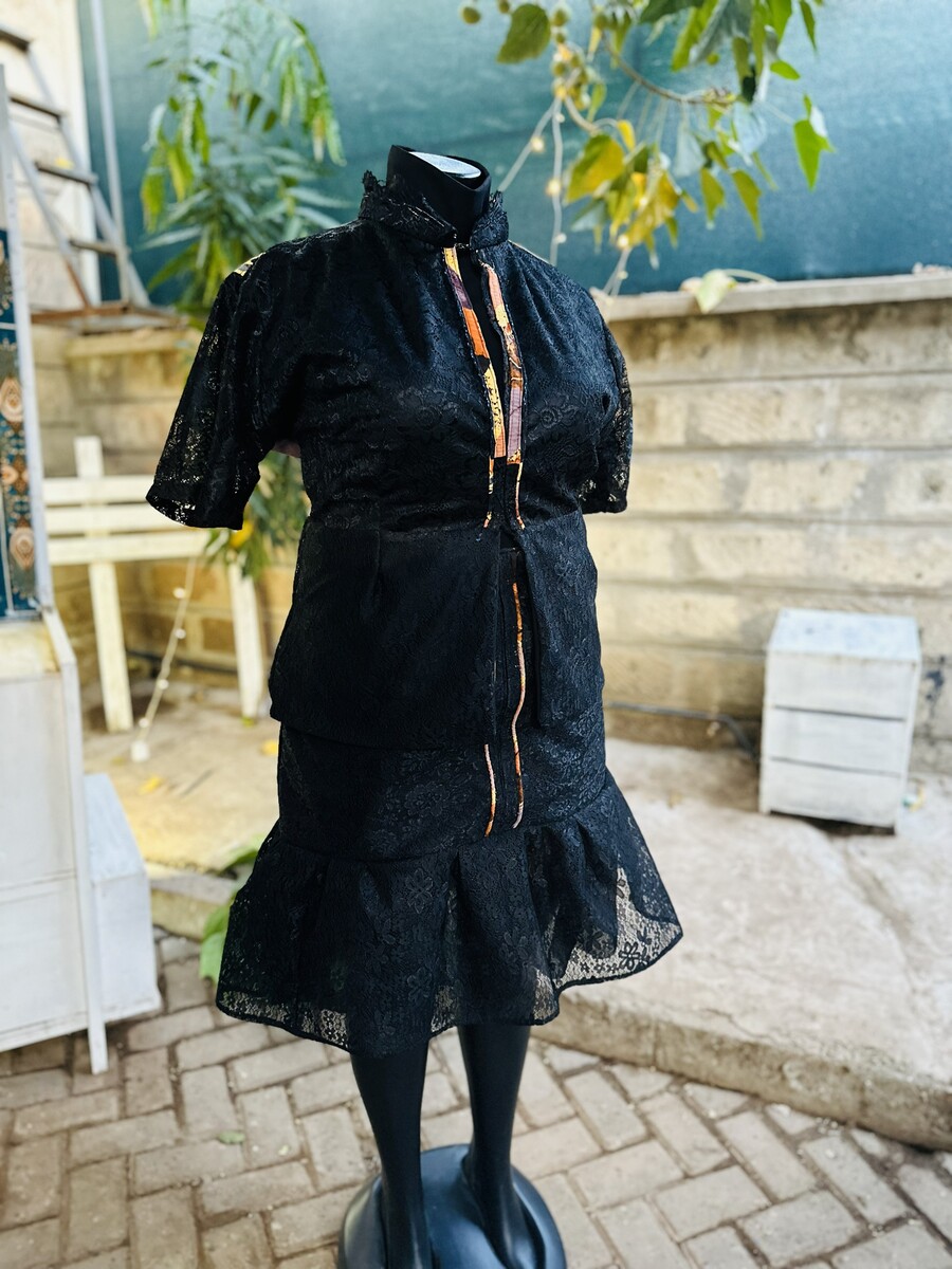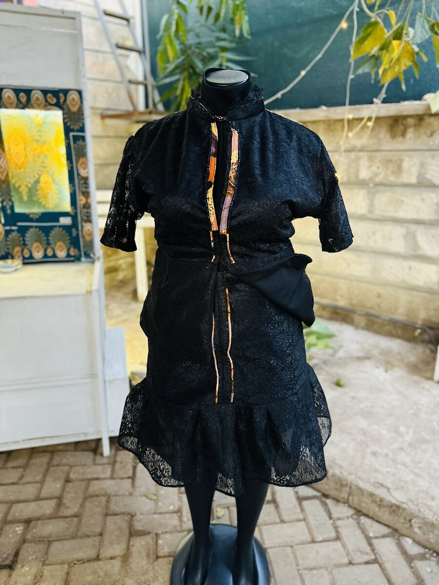 2 different fitted dress silhouettes made with similar durable lace, and Ankara fabric.